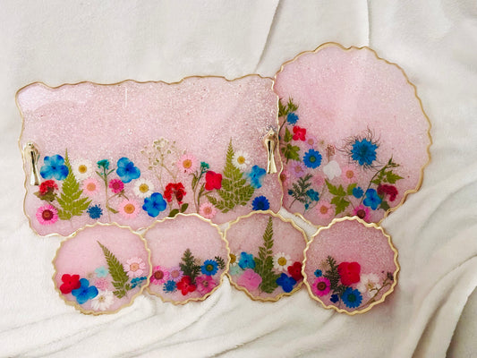 Green and gold resin coaster and tray set